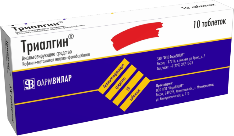 Действующие вещества: кофеин безводный – 50 мг, метамизола натрия моногидрат – 300 мг, фенобарбитал – 10 мг;